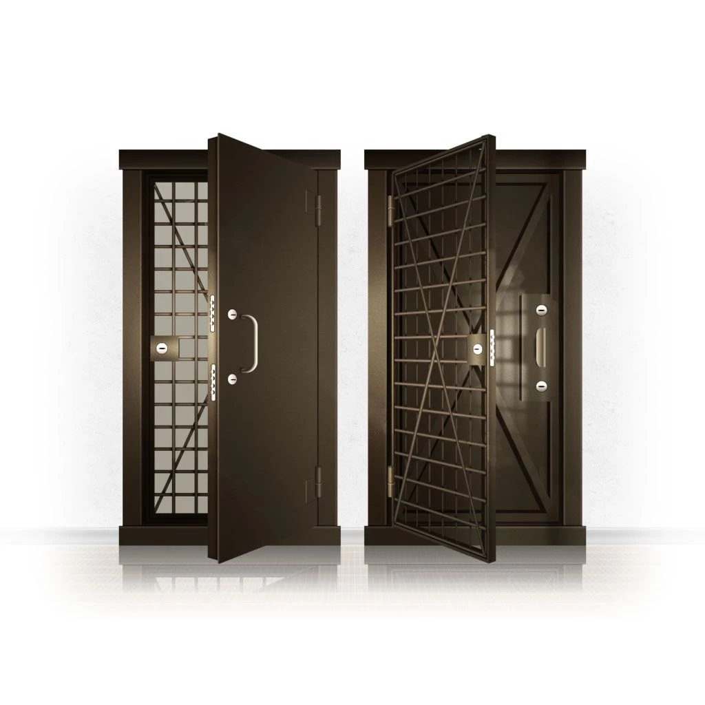 Металлические двери КХО и КХН представляют собой входные блоки, обладающие высоким уровнем взломостойкости и состоят из трех основных элементов: усиленного каркаса, сплошного металлического полотна и решетчатой двери. Дверной блок изготавливается из стального уголка 100*100 мм. Места крепления блока к стене цементируются и закрываются стальными наличниками шириной 40 мм. Крепеж заходит вглубь стены на 80 мм. В конструкции внешней створки монтируются ребра жесткости, для обшивки используется сталь толщиной не менее 3 мм. Внутренняя решетка изготавливается из прутка диаметром 16 мм. Размер ячеек решетки должен составлять не более 15 на 15 см. В точках пересечения прутья надежно приваривают друг к другу. В КХО и КХН необходимо поддерживать определенную температуру и влажность. Для этого внутреннее пространство глухой двери заполняется теплоизоляционным материалом, а по периметру двери приклеивается уплотнитель. Такие двери оборудуются замками с повышенным уровнем взломостойкости. Специализированные двери КХО и КХН в Петровом Вале могут быть оснащены сигнализацией, в конструкции могут быть проушины для навесного замка и элементами для опечатывания. Если идет речь о двери в комнату хранения оружия, в створке оборудуется окно для выдачи оружия и спец. средств, которое накрывается стальной дверцей.